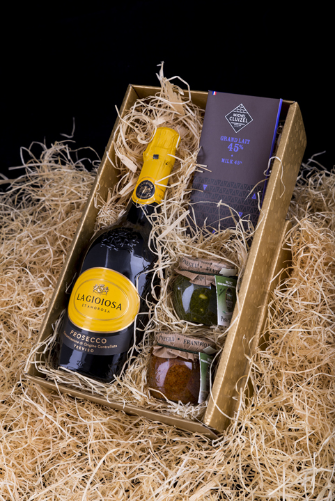 See ilus kingitus sisaldab kerget ja värsket Proseccot, Michel Cluizeli šokolaadi ning gurmeehõrgutusi Itaaliast.